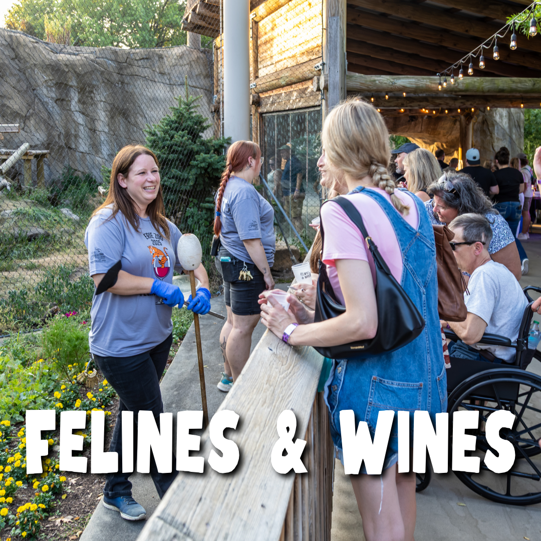 The Erie Zoo is excited to bring back Felines & Wines for its 5th annual Big Cat Conservation fundraiser. This year we have moved the date and time to Saturday, May 16th from noon to 4pm, to provide more springtime outdoors adult-only events that gives the attendees the opportunity to see more animals than they would during the night-time events. Felines & Wines will feature samples from local wineries, meaderies, and distilleries, exclusive cat training demos, live music, and more! This event is a limited ticketed event to 1,300 people.